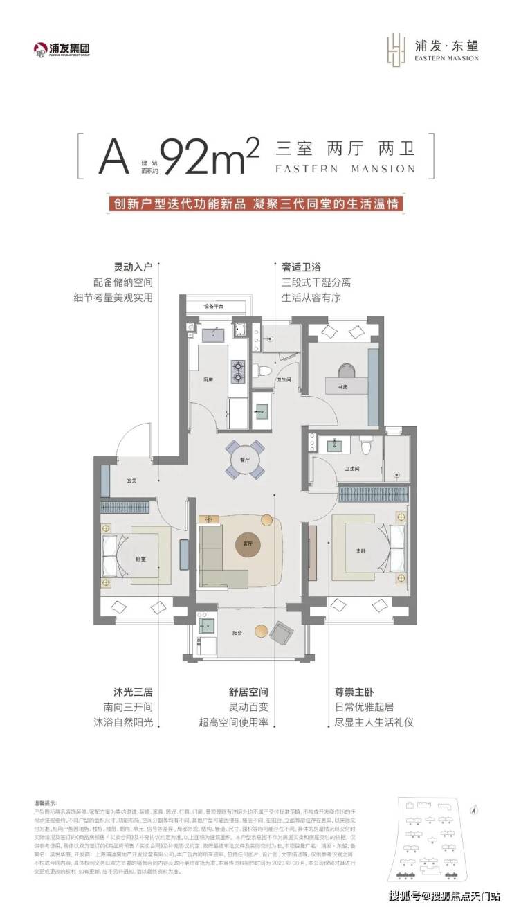 建面约92㎡3房产品市面上大多都是1卫的设计,但浦发东望为2卫的设计,实用性超高的同时,空间也较为宽绰。