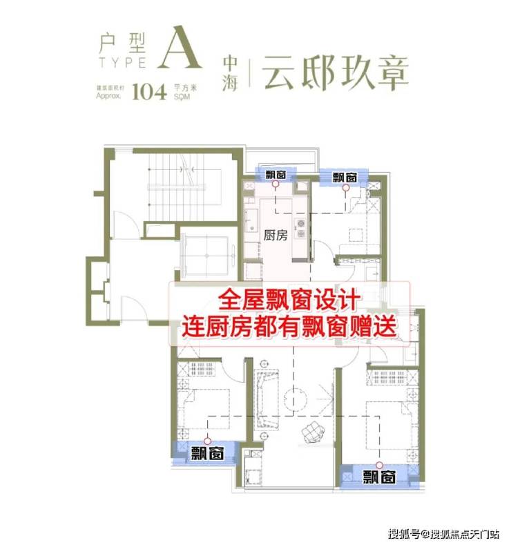 亮点④全屋飘窗设计,主卧270度转角飘窗阳光房!