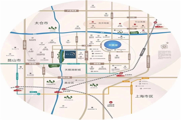 自驾:沪宜公路贯穿了整个苏南,向北通达苏州、常州,向南通往上海嘉定,开车10分钟内即可进入G15沈海高速,前进路、健雄路为东西向主干道