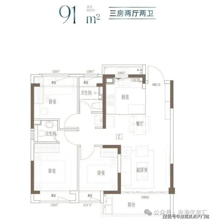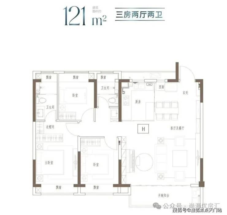 建面约91㎡-121㎡ 3房2厅2卫;这几个户型都是3房的设计,满足想一步到位的购房者。3开间朝南+客餐厅连通阳台+全卧室飘窗,以及套房式主卧设计+2卫,即使是三代同堂,也能让生活从容。