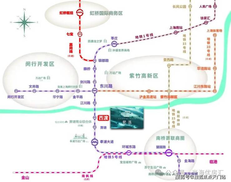 闵行东川路站换乘地铁23号线(在建)速达徐汇;