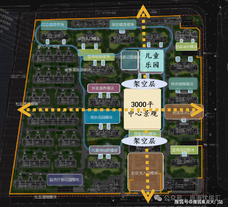 难以置信,项目竟舍弃社区中心的楼王位置,空出一栋楼,只为打造舒适开阔的生态核心。如此“血本”,换来了一个约3000平的超大尺度空间,做成了多功能中央景观。