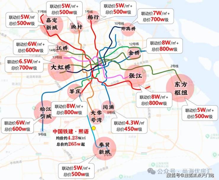 项目往北一站地铁,去年华润置地拿下的闵行江川路地块,房地联动价高达约5.8万/平;向北三站,颛桥新房均价高达约7.35元/平。