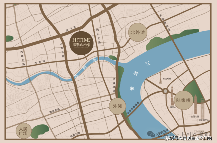 海泰北外滩项目拥绝佳地理优势,项目位于上海虹口区四川北路南段,南临黄浦区外滩源,西与静安区苏河湾相伴。处于黄浦江、苏州河交汇处,与陆家嘴隔江相望。距离南京东路1.0km,外滩源0.5km,外滩1.0km。项目以赤诚之心打造约160m超高层浦西地标建筑,可一览上海繁华美景。基于上海百年历史底蕴,创造海派经典匠品。