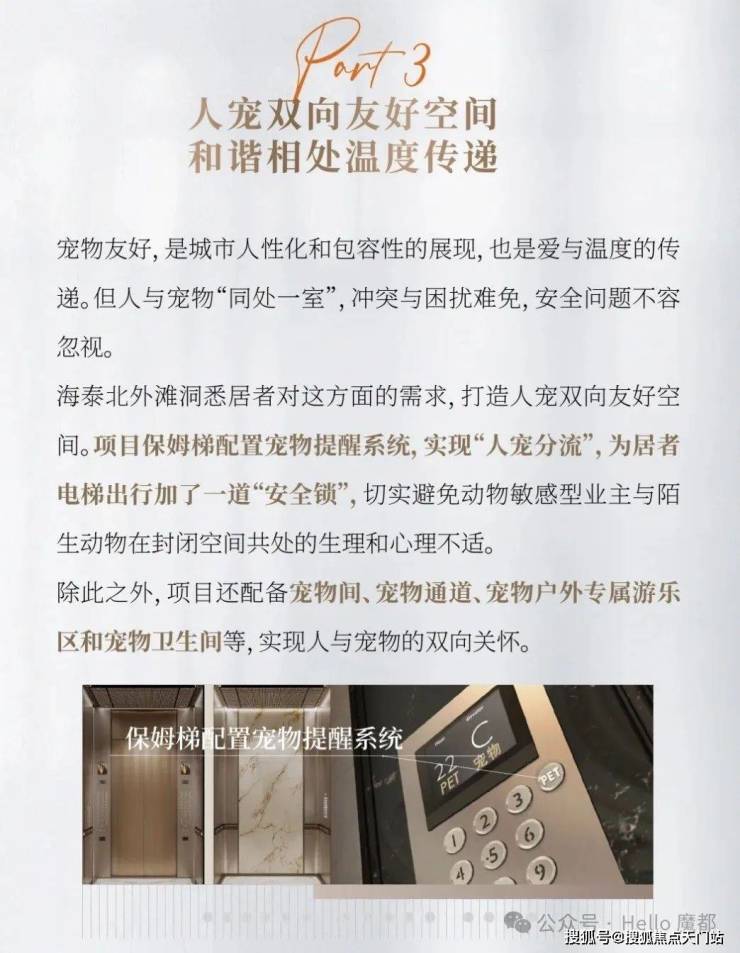 海泰北外滩注重打造美好生活,如室内干衣系统、宠物间和宠物通道,电梯宠物提示系统、宠物户外专属游乐区和宠物卫生间、郊区专属有机农场直送新鲜食材,全程冷链,全天二十四小时供应、地下空间配置私家车驾驶员和私人助理休息室、家庭酒窖与家庭储藏室、私家车驾驶员和私人助理集中健身娱乐空间、访客等候区和访客驾驶员休息室、专属快递收发室和智能收取系统、集中洗衣服务系统、集中高档衣物储藏空间、家庭影音室、专属大型车停车位等满足不同家庭需求。