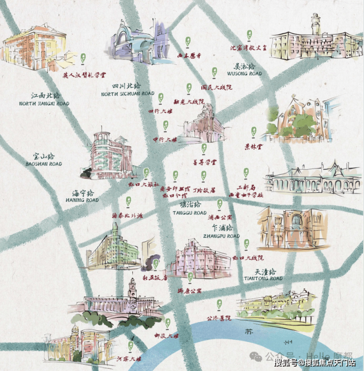 虹口是海派文化的发祥地,交通便利,商贸发达。早在道光二十五年(1845),东印度公司在徐家滩(今东大名路高阳路一代)建驳船码头,随后英美洋行先后在黄浦江北岸修建码头。