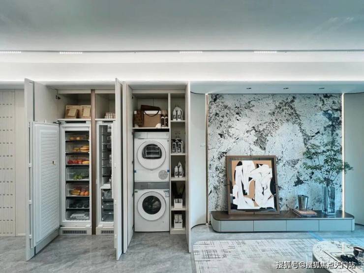 这样一来,客餐厨中,搭配可移动式的“开放式厨房”设计,直接“包圆”了,俨然一个“荟聚场”。