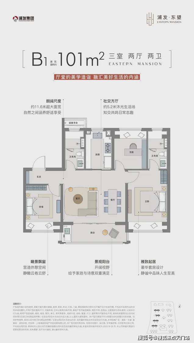 B1户型更是罕见的在这个面积段,做到了横厅设计,进一步放大尺度感,简直是必抢的存在