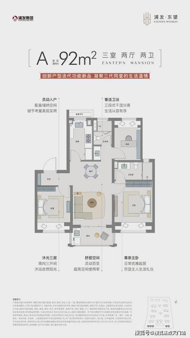 1、建面约92㎡3房2卫