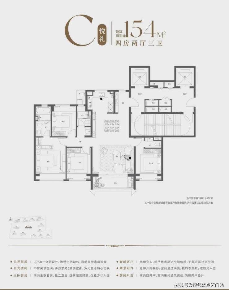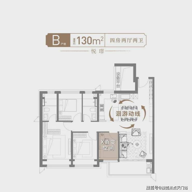 全景面宽+无界通厅+高附加值+收纳天花板,130㎡的面积直逼140㎡的尺度感!