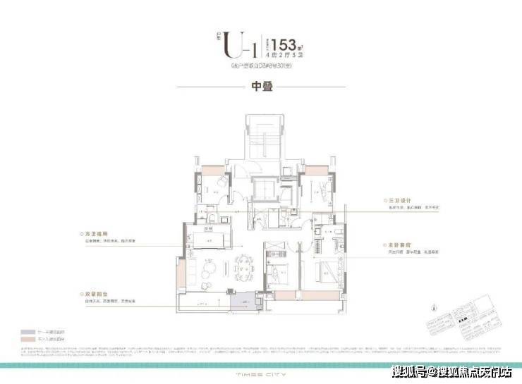 项目的中叠 四开间朝南,超大IMAX的采光面,妥妥市区豪宅大平层的尺度感。