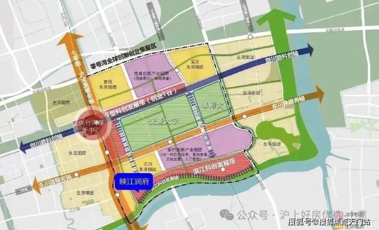 【华润置地·映江润府】所在的江川街道作为“大零号湾”发源地、核心区、建成区的优势,完善产业生态,将打造产城融合、科创集聚、服务完善、大气时尚的现代化滨江新城区!(信息来源于科创闵行)