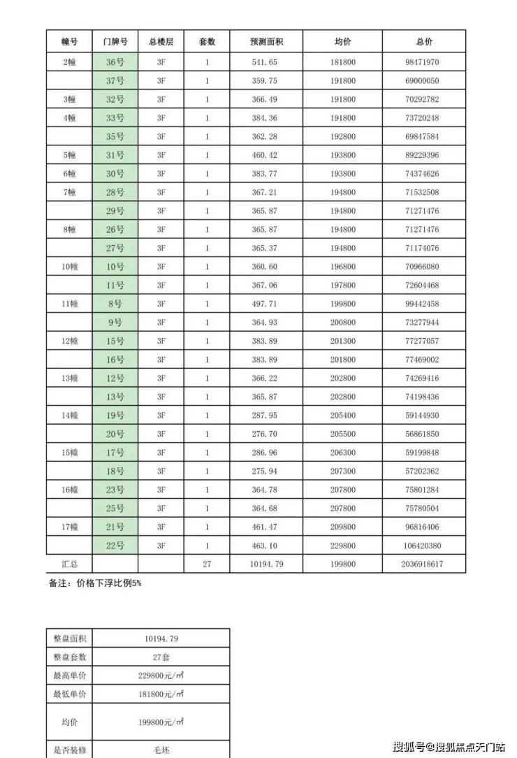 别墅一房一价表:
