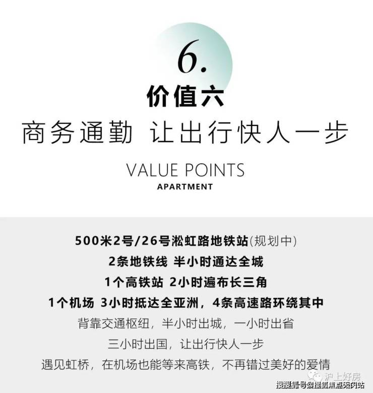 交通配套方面:项目500米2号/26号淞虹路地铁站,2条地铁线半小时通达全城,1个高铁站2小时遍布长三角,1个机场3小时抵达全亚洲,4条高速路环绕其中,背靠交通枢纽,半小时出城,一小时出省。