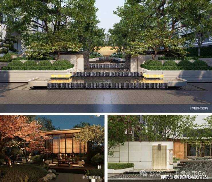 海派滨水会客厅入口,融合奢石、红砖、叠水等布景元素,匠艺锻造中轴门庭对称礼序,演绎古典学院风严谨与优雅并存的高颜美学主义