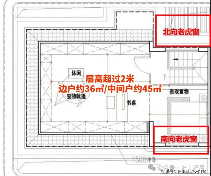 ④, 同样拥有面积可观及采光通透的 闷顶空间 (边户约37㎡/中间户约38㎡)