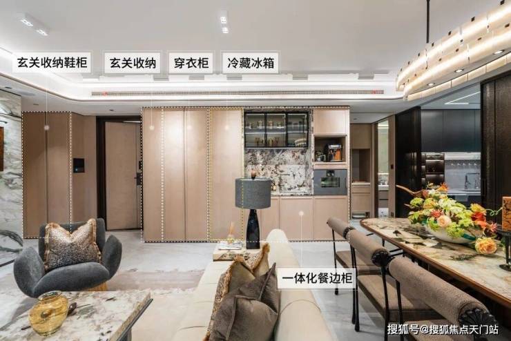 项目137户型进门做了一整排收纳柜,堪称收纳界的“精细管家”,分类科学到让每一件物品都能精准归位。