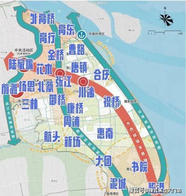 以大治河为界限,浦东北部重点发展金色中环,浦东南部重点发展临港新片区。