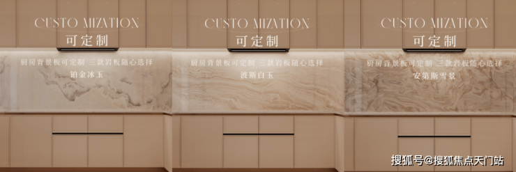 · 厨房背景墙可定制: 铂金冰玉、波斯白玉、安第斯雪景三款可选,定制专属于你的大师厨房。