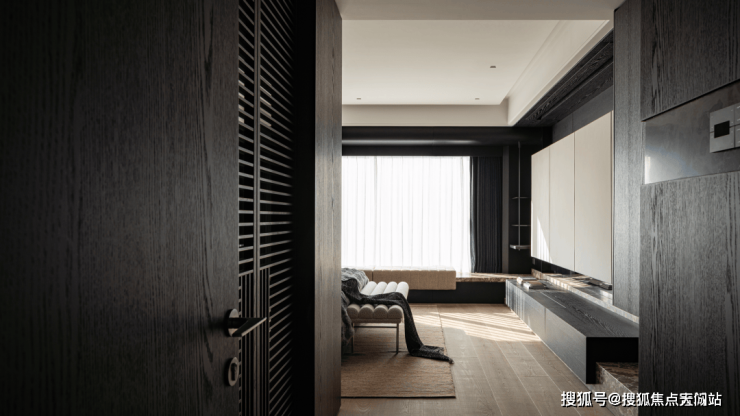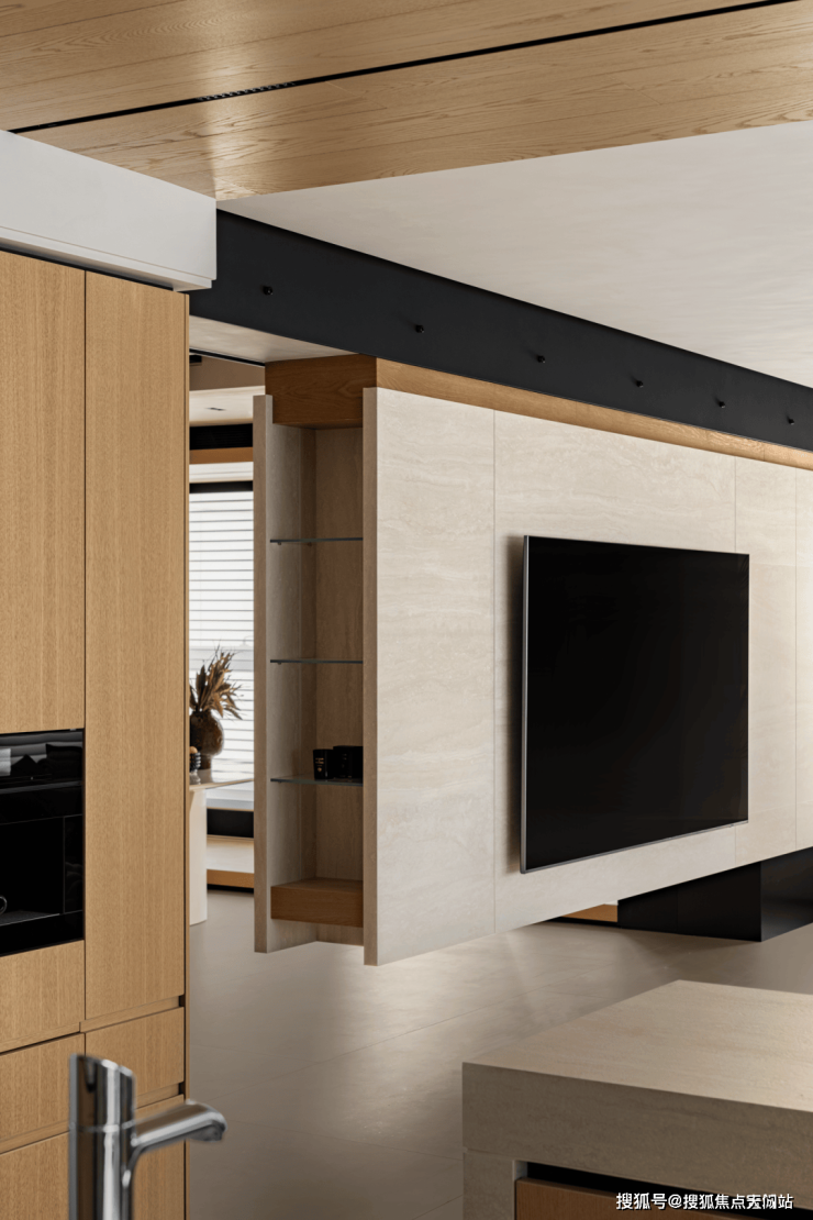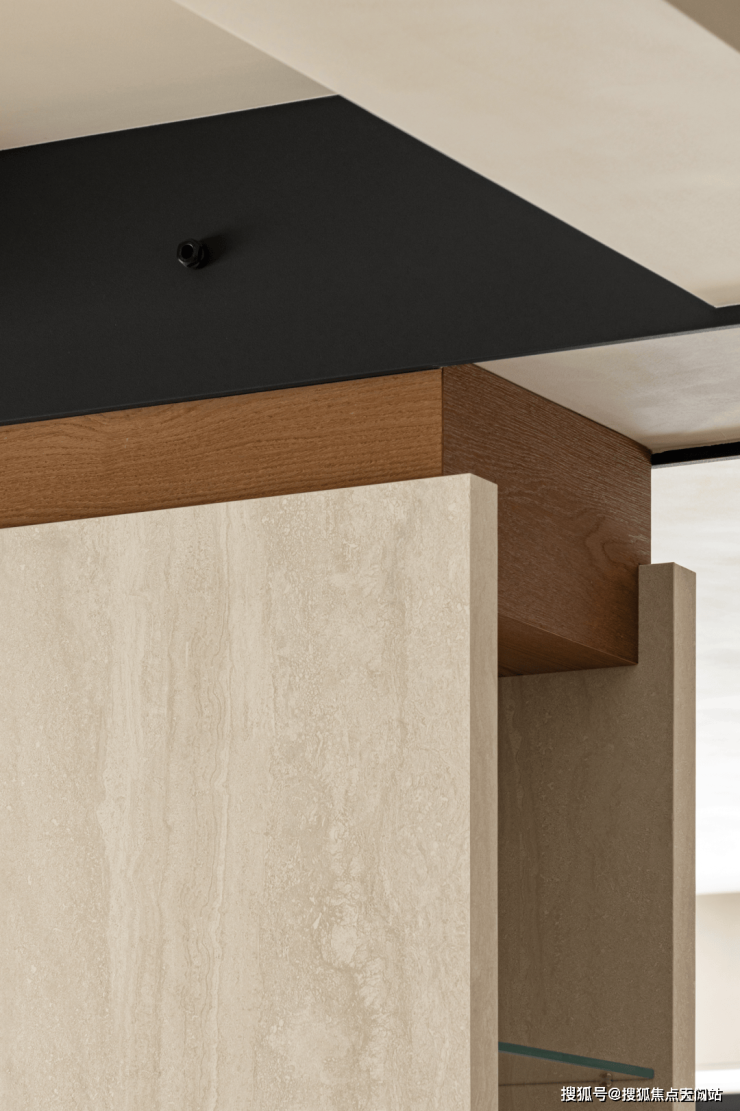 大理石的高低错落与墙面木作系统结合,织物的柔软形成构筑逻辑,沉稳与感性交融,构成一种独特的空间节奏。