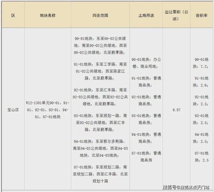 前不久,宝山区W12-1301单元90-01、91-01、92-01、93-01、94-01、87-01地块正式出让。