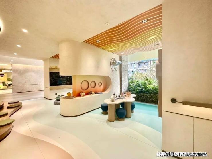 社区内部还有开放式架空层设计,结合建筑、空间、自然环境关系,室内室外联动,呈现一个景观会客、海浪书屋、儿童休闲等多重功能的开放式架空层,目前实景基本还原效果图,未来业主及孩子也有一个玩乐及阅读的开放式公共空间,更具生活趣味~
