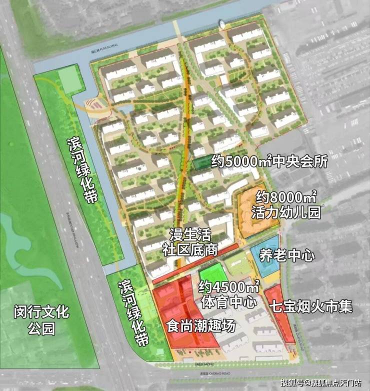 约4500㎡体育中心为核心,向滨河绿化带(红线外)外延,形成一条富有能量以运动为主题的商业轴线。