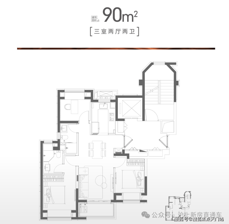 在售户型图如下:建面约90㎡的三房两厅两卫