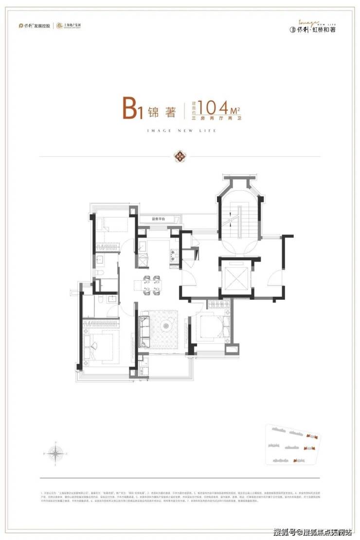 但保利虹桥和著的建面约104㎡3房2卫,却很好的解决了以上所有问题: