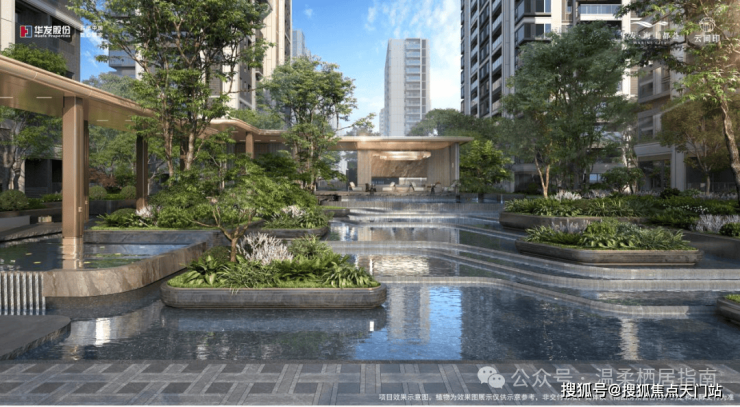 三重·水院之奢,沉浸于无界。约350平方米的核心水院的涟漪勾勒“远山如黛,秋水含烟”之境。跌水、浮岛、精选花木的视觉平衡,在动静间辉映。