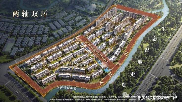 而且项目 整个地块三面都被绿地与河道包裹,尤其是项目东侧,公共绿地、滨河景观带、城市生态走廊此地排列,天然具备 构建多层次景观视域的条件。