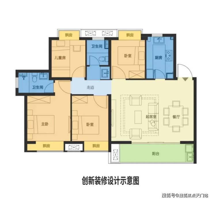 如果想要纯正的私密的4房,可参考上图创新装修设计示意图。