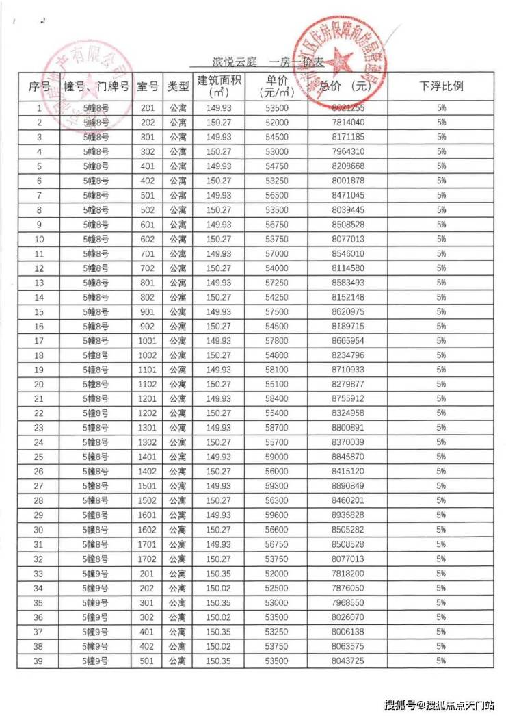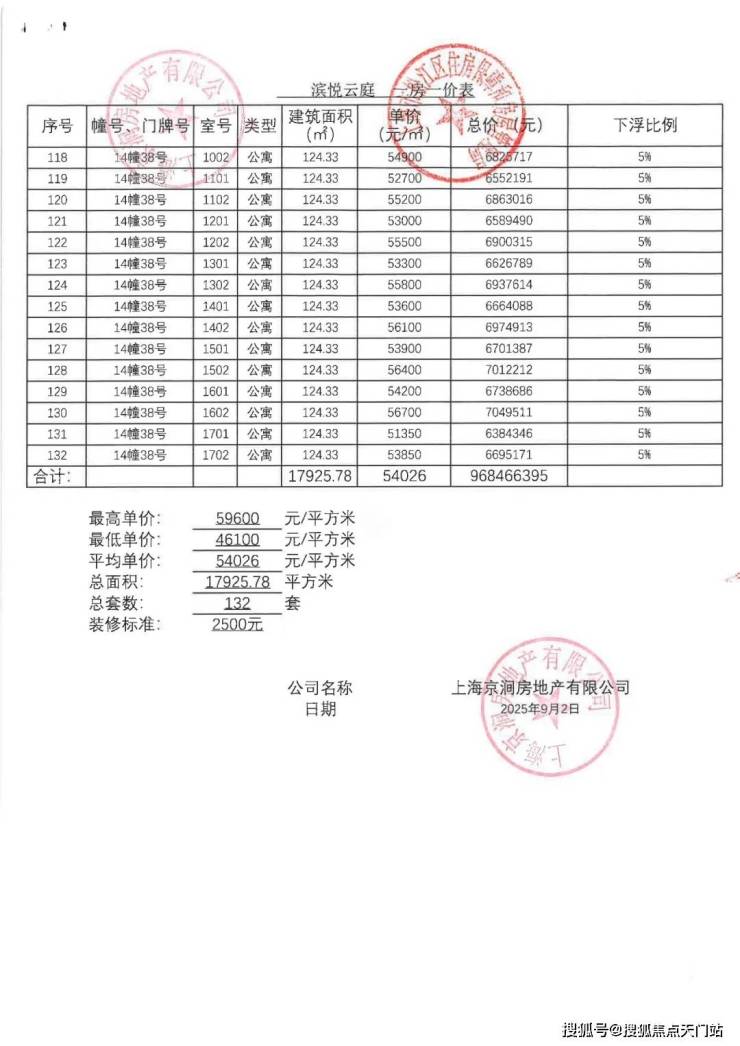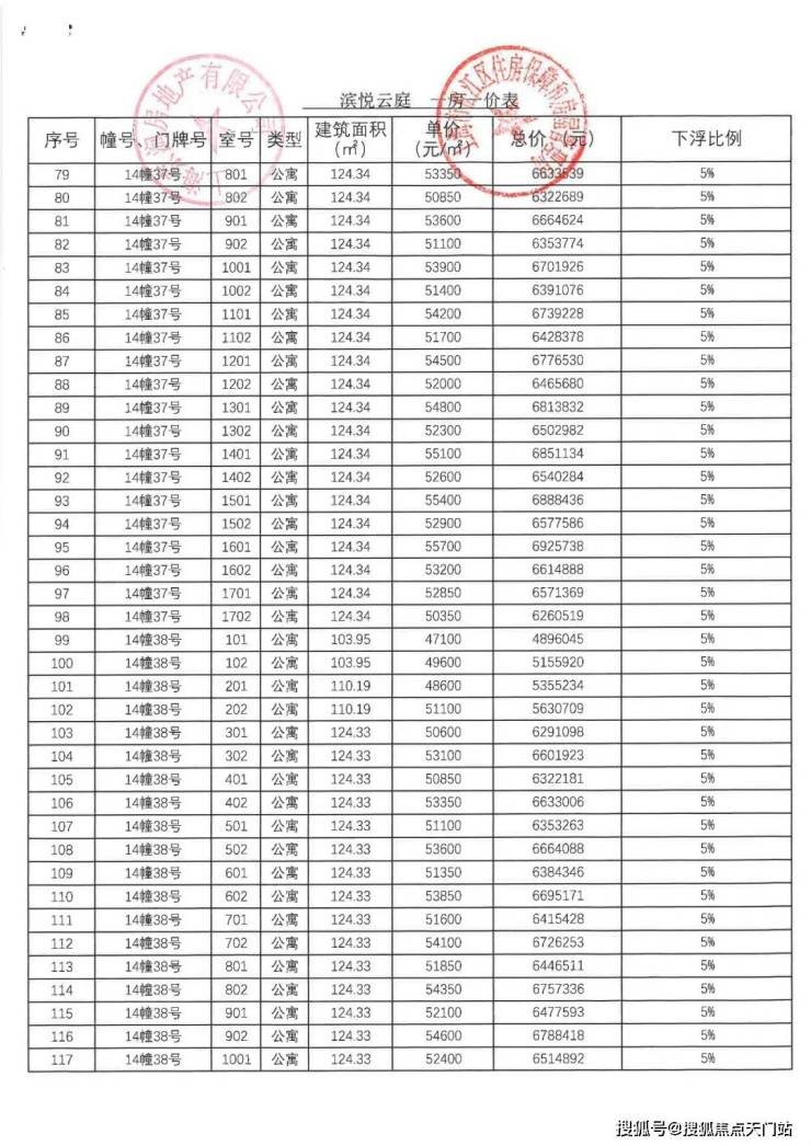 一批次一房一价表: