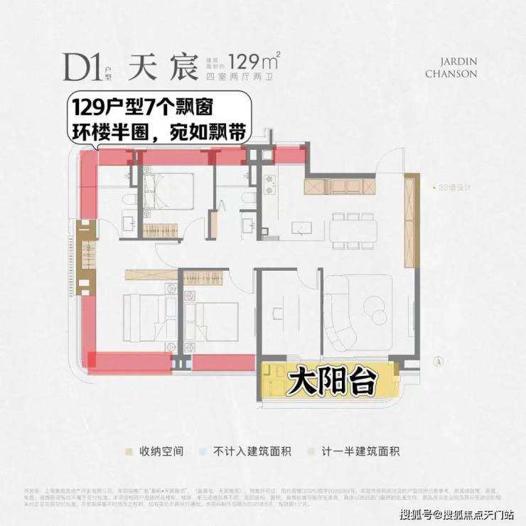 “不是飘窗,更像是飘带。” 采光周长惊人,以129㎡户型为例, 7个 飘窗,环楼超半圈,宛若飘带。