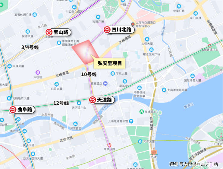 交通配套:项目周边有3、4、10、12号线四条轨交,自驾则可以通过北横通道和外滩隧道快速抵达城市各个地标。