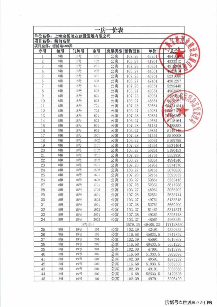 一房一价表发布!