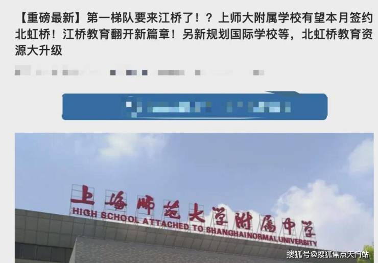 近日,嘉定江桥传出一个令人振奋的消息,上海第一梯队的 上师大附属学校或将于本月与嘉定区和江桥相关部门正式签约, 入驻江桥北虹桥地区,即上虹桥北虹之星。(具体情况等官方消息)