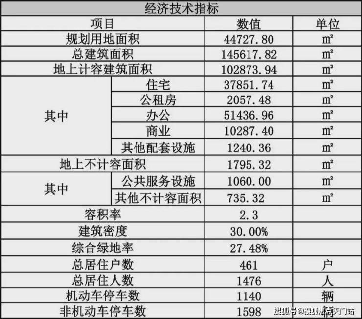 根据项目方案显示, 拟建4栋住宅楼、1栋公共租赁住房、7栋花园式办公楼、2栋办公塔楼及其配套裙房、变电站、公共服务设施、社区配套设施以及地下车库等。总建筑面积预计约为14.6万平方米,其中住宅建筑面积约为4.1万平方米,办公建筑面积约为5.1万平方米,商业建筑面积约为1.0万平方米, 规划总户数为461户。。预计可售房源约421套。