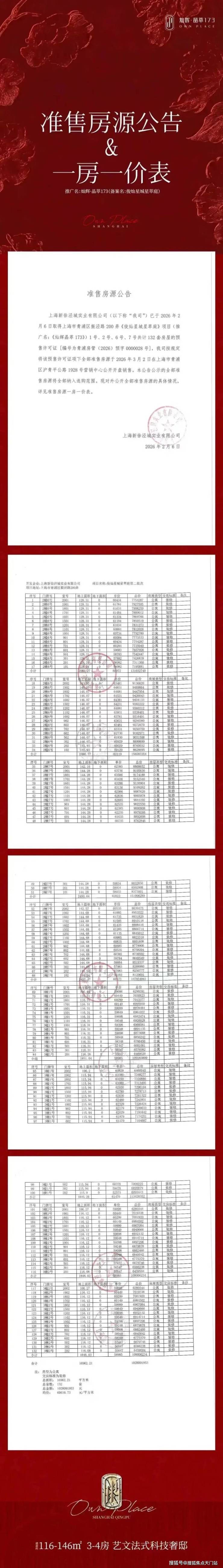 最新消息: 大虹桥徐泾新盘【灿辉·晶萃173】,即灿耀星城四期项目,主力户型建面约116-146㎡3-4房,第二批房源已取证,2月8日开启认购,3月2日开盘!