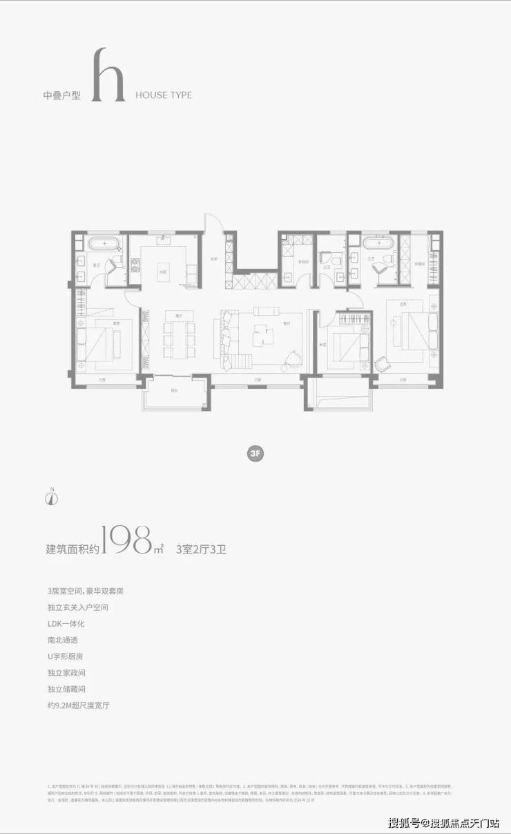 建面约138㎡的中间套户型,与边套略有差异,但同样尺度感强、细节满满