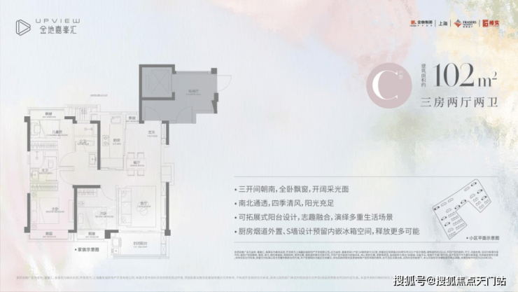 以及我们的 建面约102㎡(C户型)三房两厅两卫,不仅保留了其小户型所有的优势,更增强了空间感和舒适度!