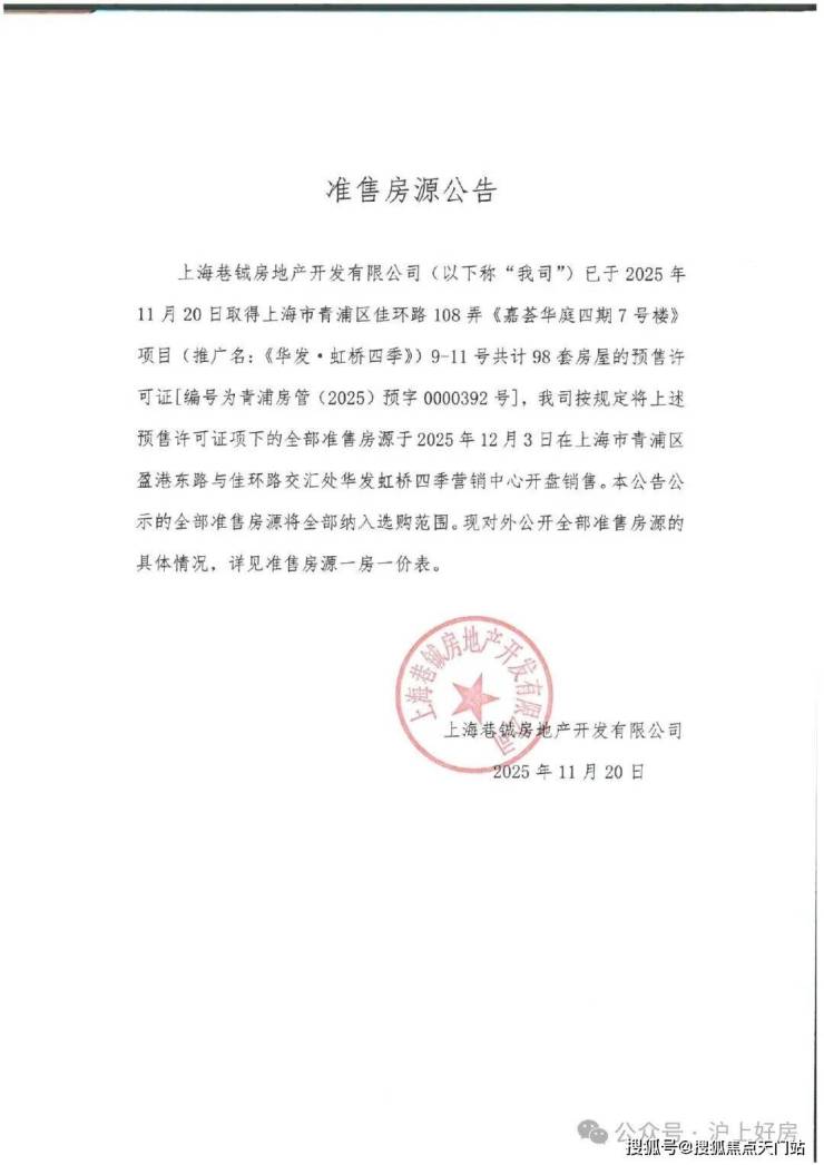 【青浦红盘】『华发虹桥四季』约90-130㎡3-4房!总价450万起!近地铁17号线!
