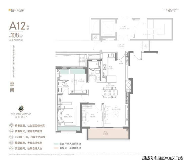 而建面约108㎡的明星户型,则在有限的空间内做到了尺度感与舒适度的最大化。 横跨客厅与次卧的巨型宽面阳台,采光面极为奢侈