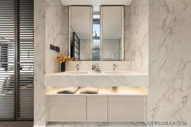 此外,室内还大量运用 雅士白大理石、大花白岩板、皇家孔雀岩板、水纹夹丝玻璃、仿洞石岩板、卡拉卡塔白岩板、灰色皮革等定制材质,以华润置地独有的“五奢体系”,彰显着对高品质生活的极致追求
