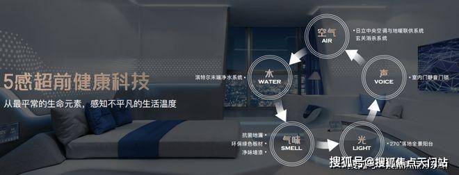 项目在健康方面匠筑5感超前的健康科技,从五个最平常的生命元素,提前为每一位业主感知不平凡的生活温度。