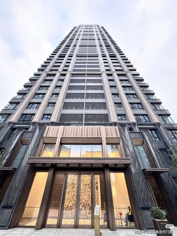 从色彩上来看,建筑多采用棕色、灰色、黄色等古典主义建筑中常见的色调,建筑显得威仪肃穆。材质采用公建化设计,以玻璃、铝板、石材等现代材质和简洁的设计手法,通过竖向线条和立面层次,突出建筑挺拔体态,树立超高层住宅公建化建筑效果。模数化铝板石材幕墙,采用数字化设计的定制铝板,形成富有韵律的光影效果。