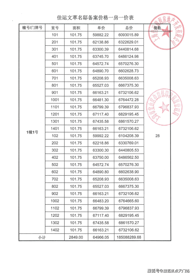 项目一房一价表▼