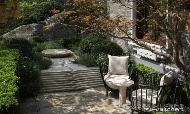 从庭园看向别墅,保留的老山墙、砖楣和门头,再加上悬挑阳台和层层露台,这种传统风貌带给人一种重见历史的感慨,又有温馨、宁静的现代舒适感。