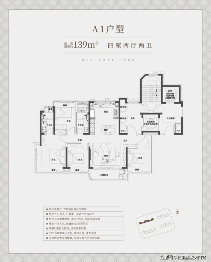 建面约124㎡大3房户型: