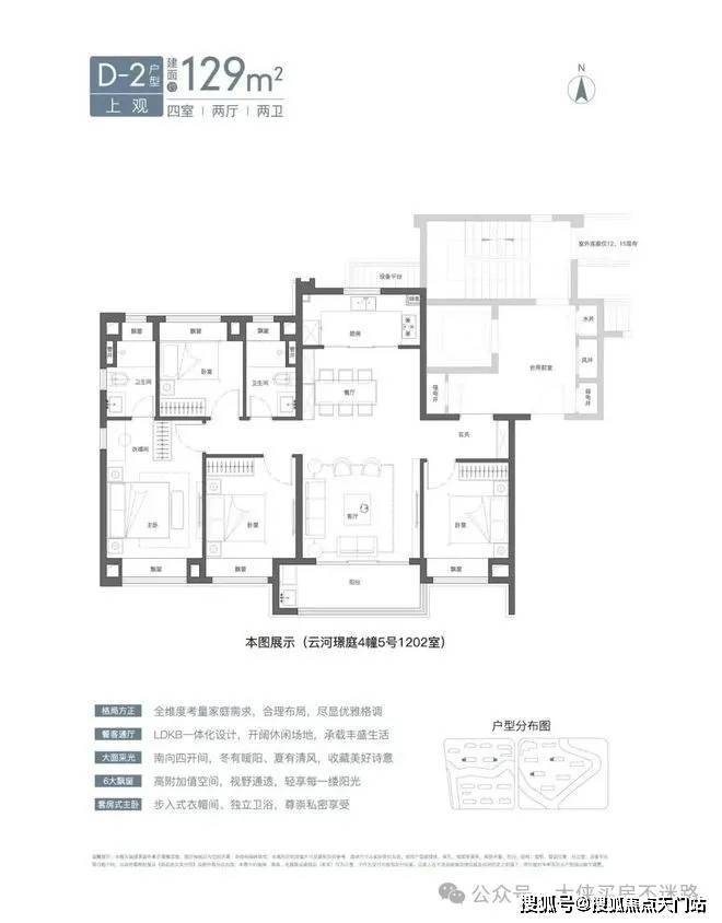 预算充足的小伙伴可以入手建面约129㎡4房2卫。